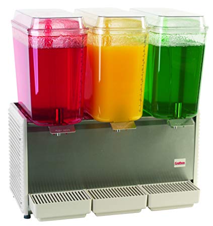 Despachador MARCA CRATHCO de bebidas refrigeradas triple. Fabricado frente de acero inoxidable con laterales y bandeja de goteo de plástico.